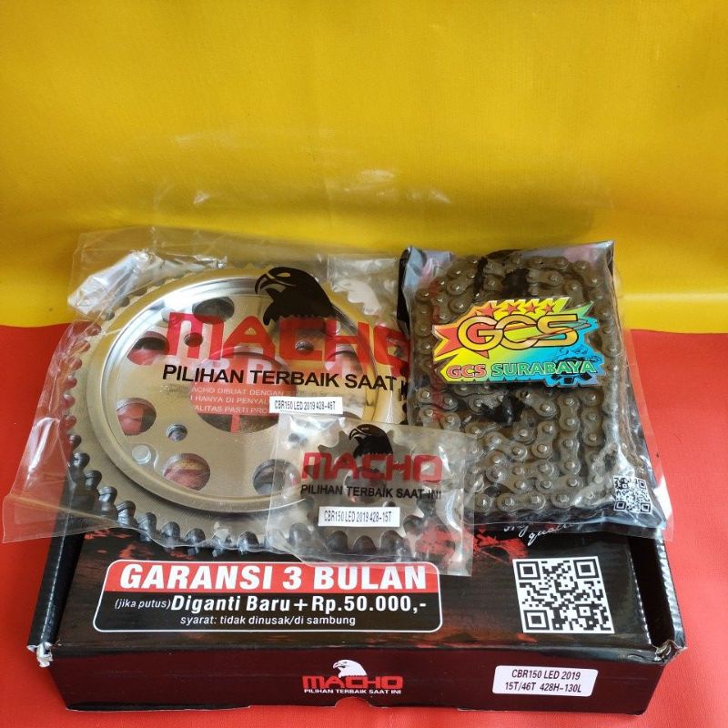 GEARSET RANTAI PAKET CBR 150 LED,CBR150 K45G LED,CBR150 FACELIFT,CBR150 TAHUN 2016-2019 RANTAI 130L (BAUT 4)
