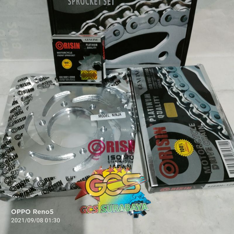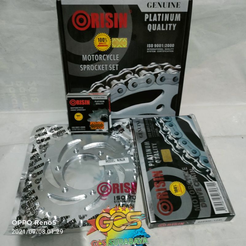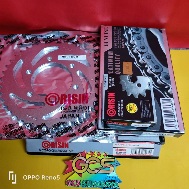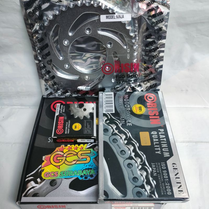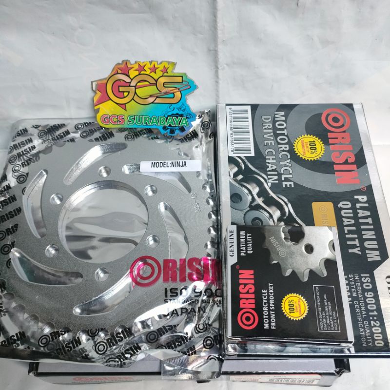 GEARSET RANTAI PAKET FULL SET KAWASAKI NINJA R SS150 NINJA 2TAK/LAMA PNP NINJA RR NEW BAJA PLATINUM QUALITY JAPAN ORISIN