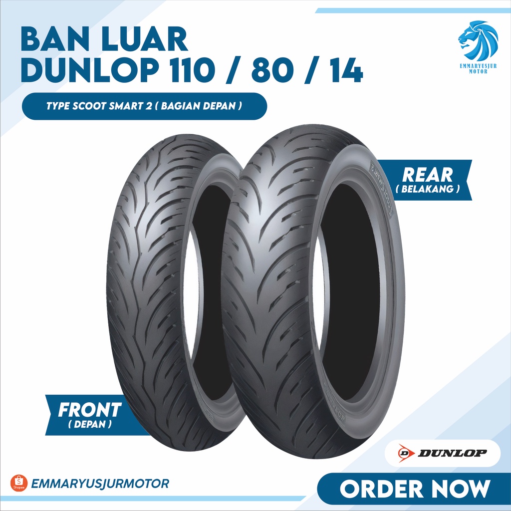 BAN LUAR DUNLOP 110/80-14 SCOOT SMART 2 TUBELESS