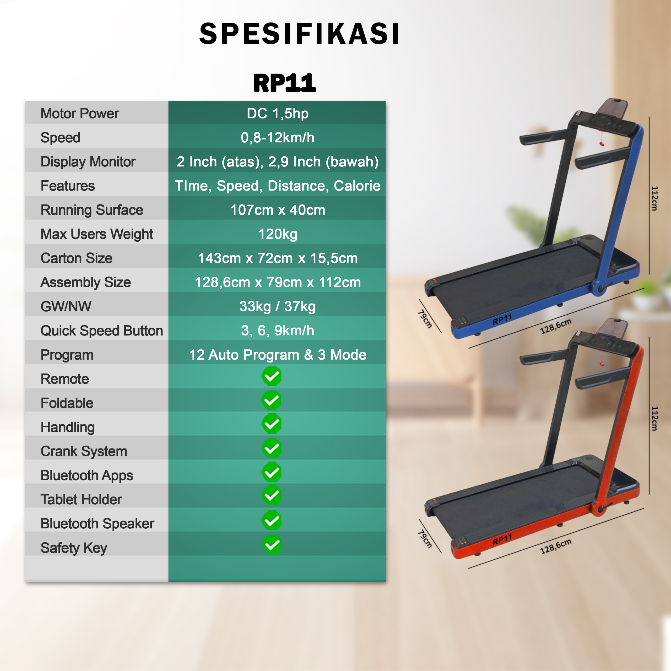 TWEN RP11 Treadmill Listrik Treadmill Portable Treadmill Walking Pad Treadmill Running Pad Treadmill Multifungsi