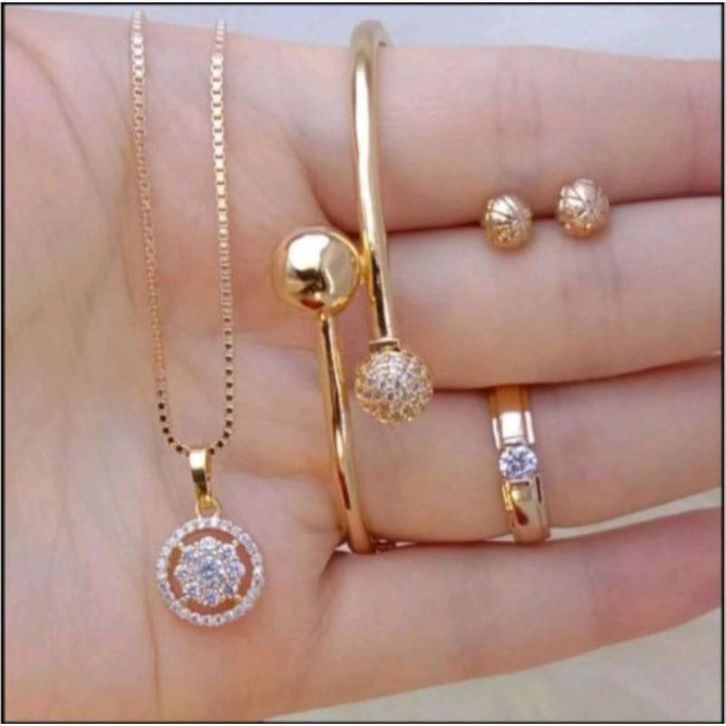 Satu set perhiasan wanita dewasa asli mata satu gelang bangle bulat mewah