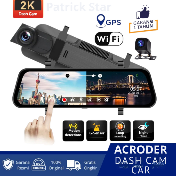 Acroder Dashcam Mobil WIFI 2K 10 Inch Layar Sentuh IPS KAMERA DEPAN BELAKANG PARKIR LAYAR SENTUH