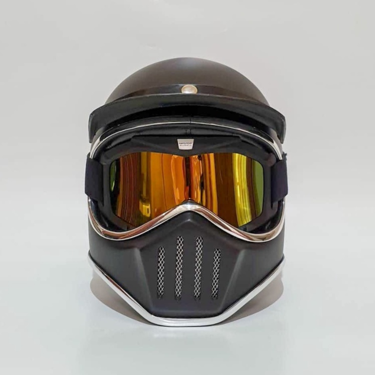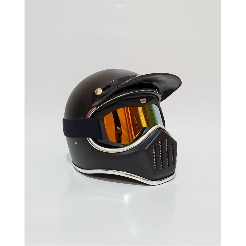 HELM CAKIL BANDIT RETRO CUSTOM WARNA HITAM DOFF