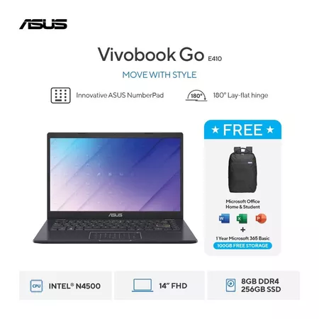 LAPTOP ASUS VIVOBOOK GO E410KA FHD4823M 14 INCH N4500 UMA 8GB 256GB PEACOCK BLUE TN FHD OPI TERBARU MURAH TANPA DP