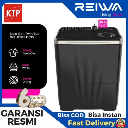 Reiwa Mesin Cuci 2 Tabung 8Kg WS-0903CESV WS0903 Black Series - GARANSI RESMI REIWA