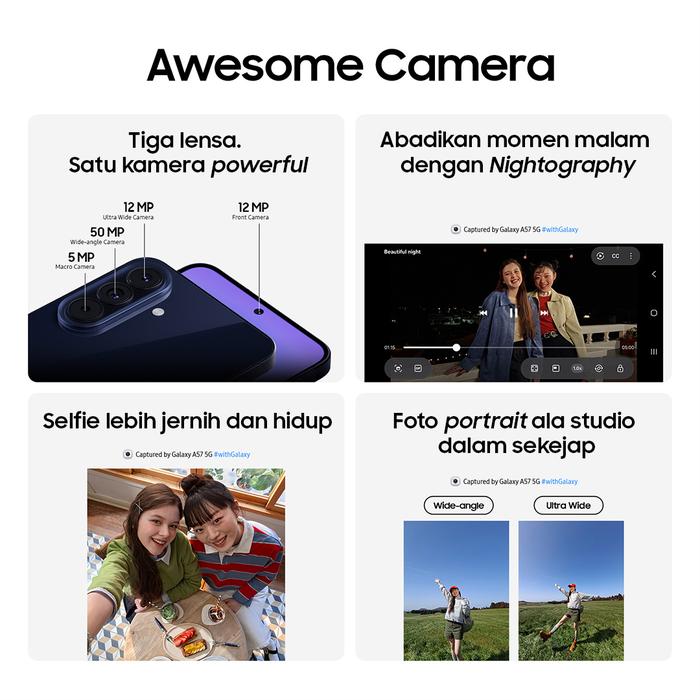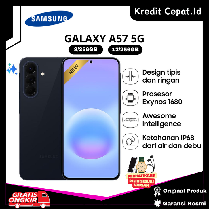 [NEW LAUNCH] Samsung Galaxy A57 5G Exynoss 1680, IP68, 5000mAh 45W Garansi Resmi - Kredit Cepat.Id