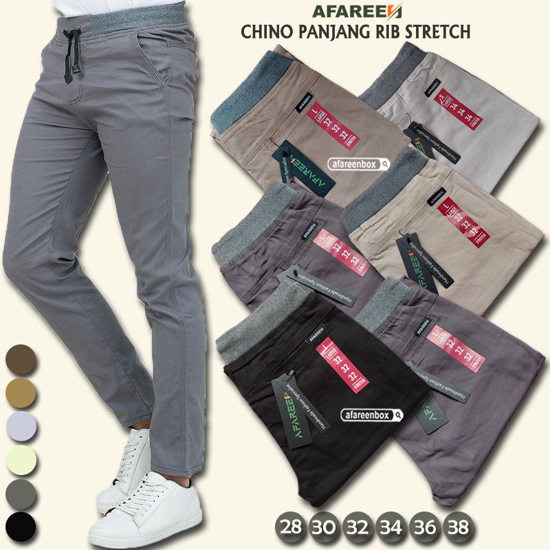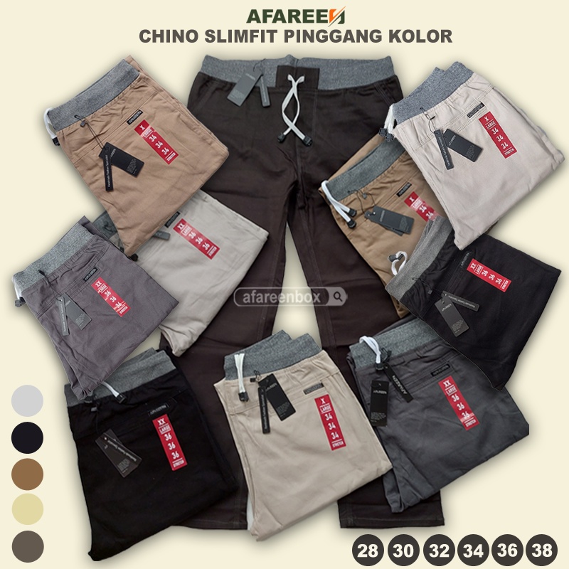 FREE ONGKIR Celana Chinos Panjang Pria Jumbo Stretch Melar Pinggang Karet Premium Size 27-38