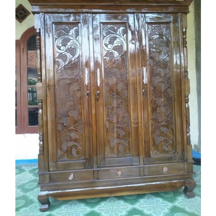 LEMARI PAKAIAN KAYU JATI 3 PINTU LACI