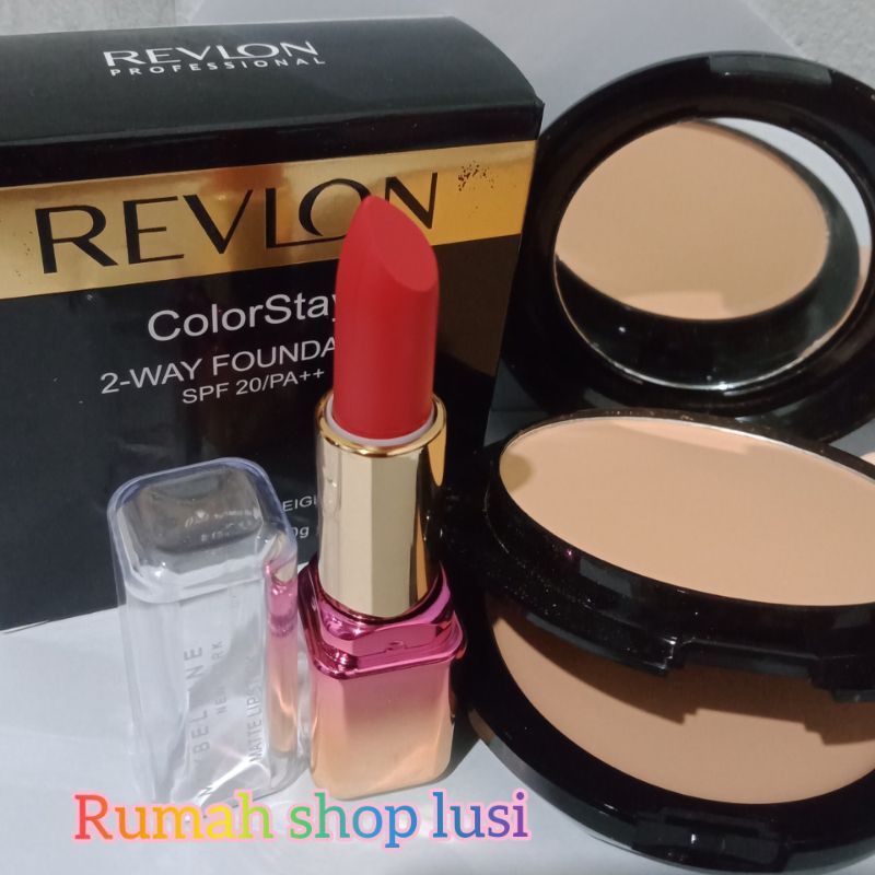 PAKET MURAH BEDAK REVLON 2 IN 1+ LIPSTIK