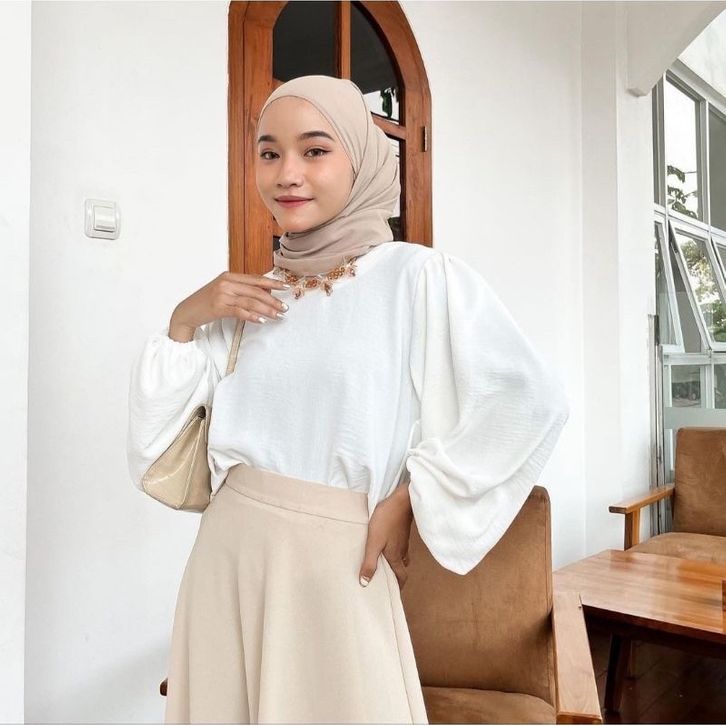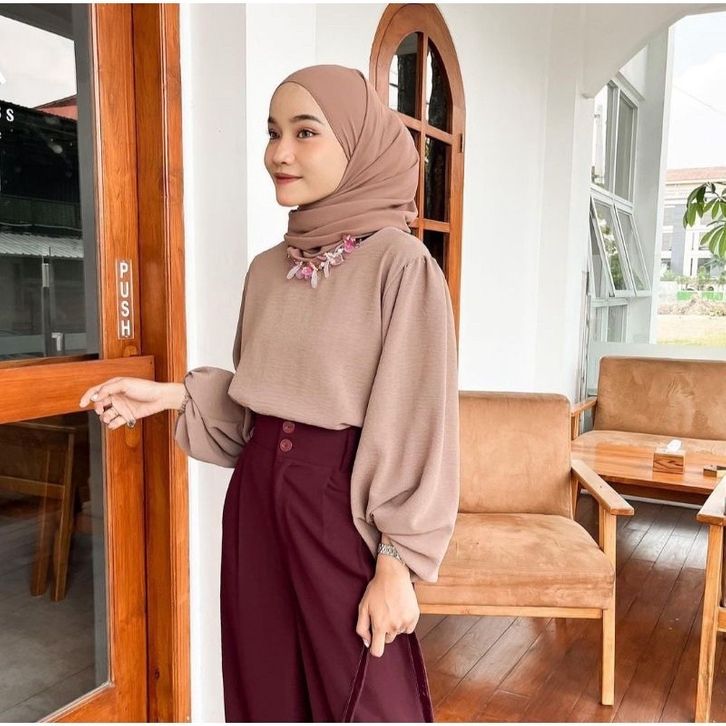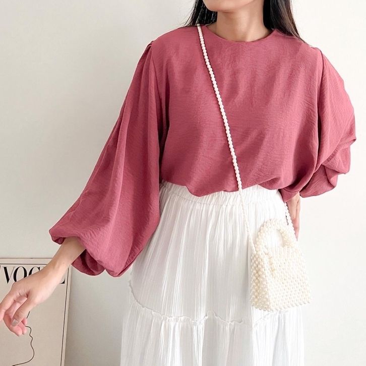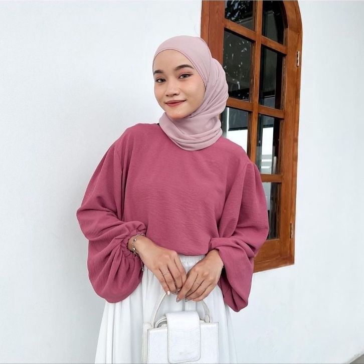 BLOUSE WANITA CRINKLE LENGAN BALON LD 120 ATASAN HITS