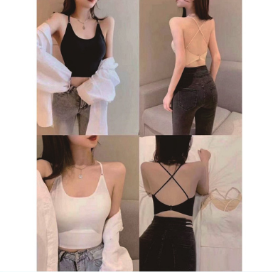 LVS - Tanktop Seamless Korea Cewek Crop Tali Spaghetti Busa Dada