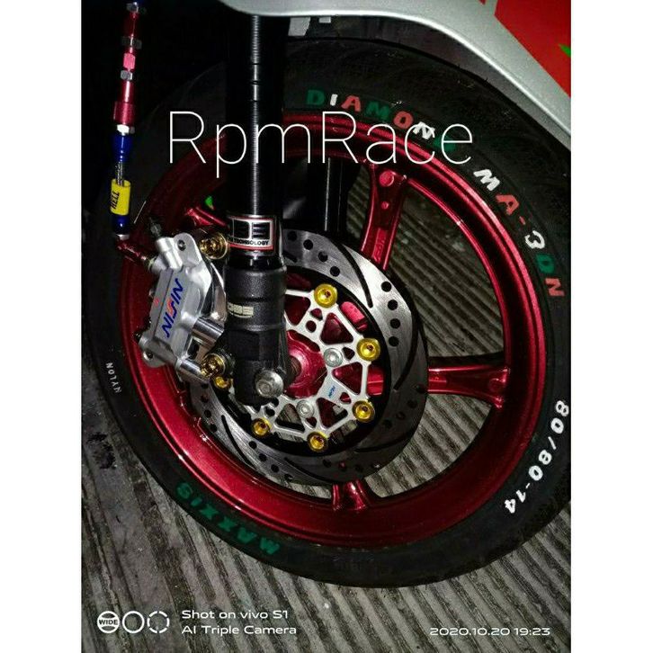 PAKET PIRINGAN CAKRAM KOMPLIT 7IN1 KALIPER NISSINS 4 PISTON SET DEPAN MONOBLOK SELANG PLUS BREKET DAN BAUT TERMURAH