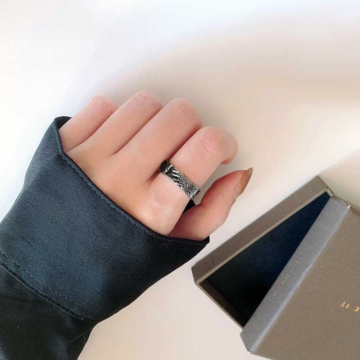 Cincin Bahan Titanium Steel Warna Silver Gaya Vintage Punk Untuk Pria Dan Wanita