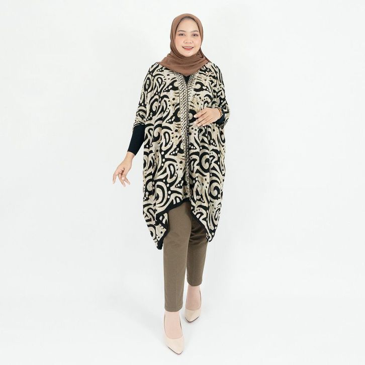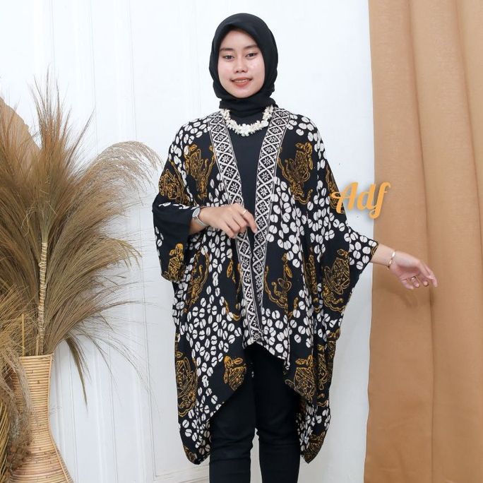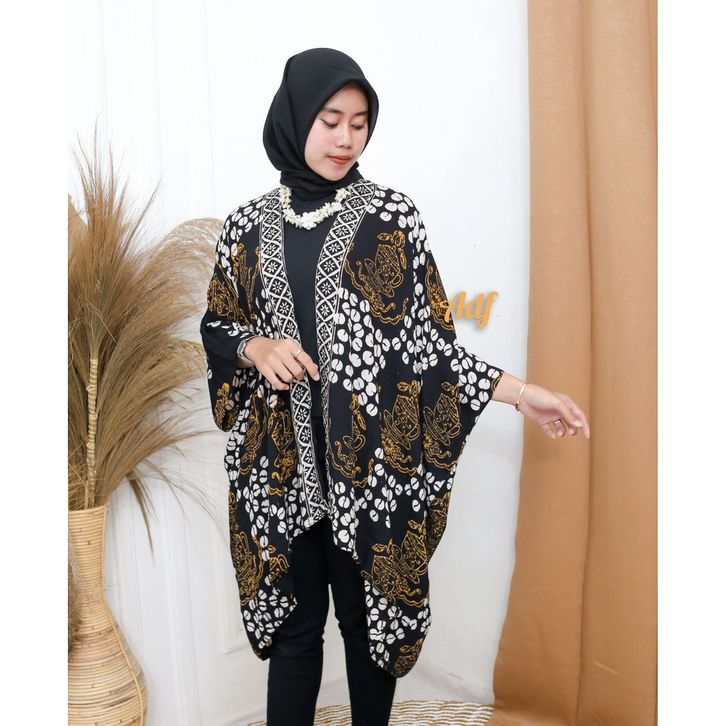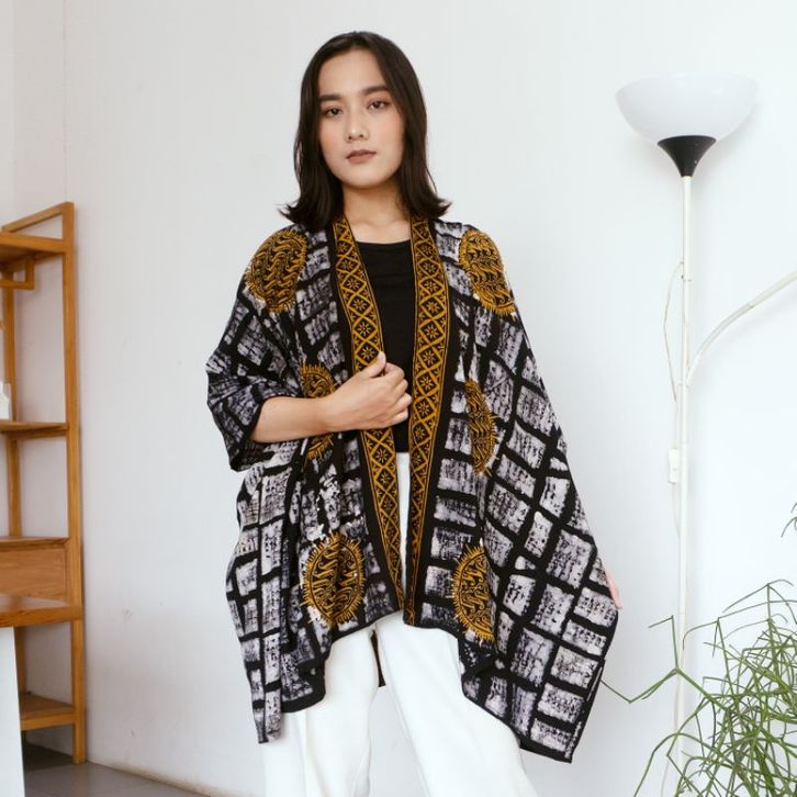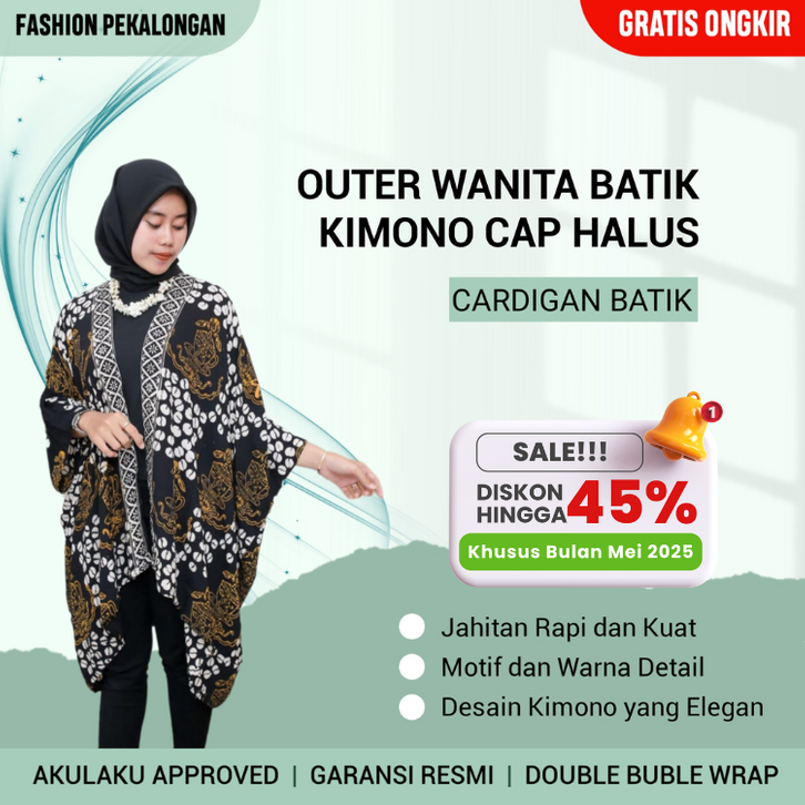 Baju Kondangan Cewek Outer Batik Kimono Cap Halus Cardigan Motif Pekalongan Lengan 3 Per 4 Pakaian Luaran Cewek Allsize