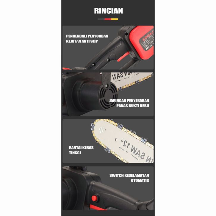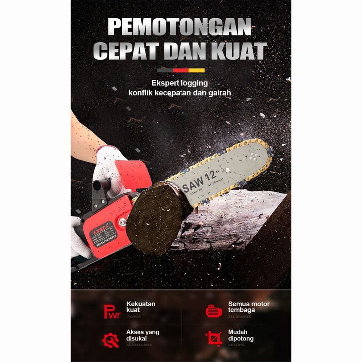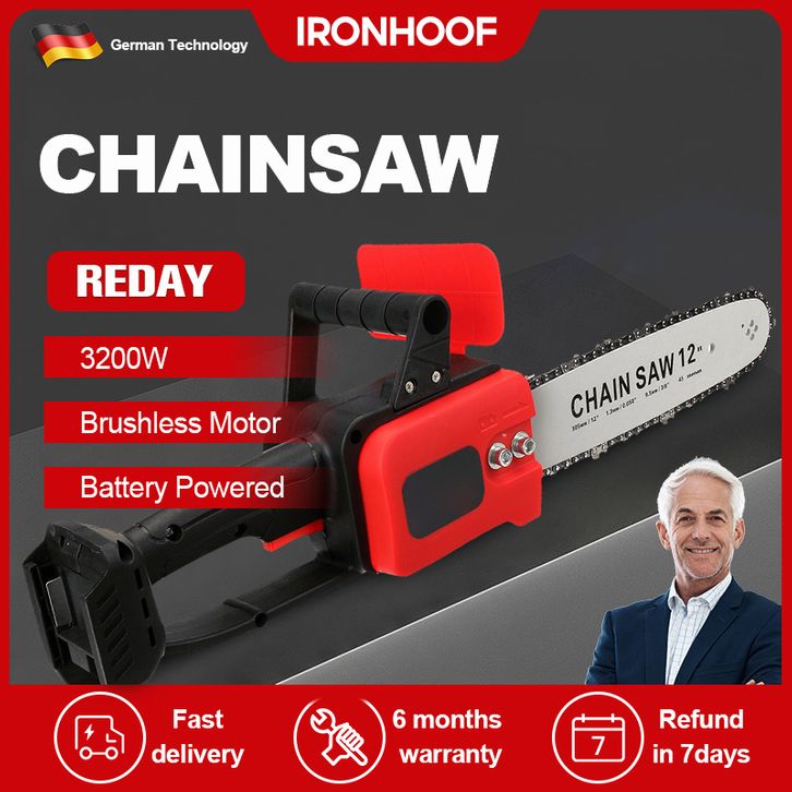 IRONHOOF Chainsaw Gergaji Rantai Elektrik Mini 12 Inch Portable Genggam Lithium 24 Volt Chain Saw