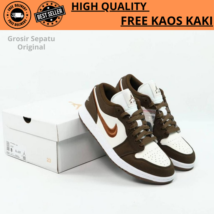 SEPATU PRIA NIKE AIR JORDAN 1 LOW BROWN CANVAS HIGH QUALITY BNIB