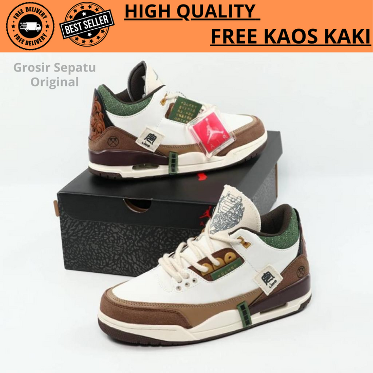 SEPATU PRIA NIKE AIR JORDAN 3 RETRO YEAR OF THE TIGER LIMITED WHITE BROWN HIGH QUALITY BNIB