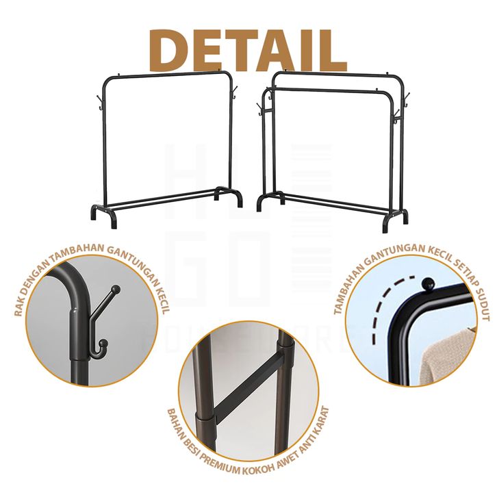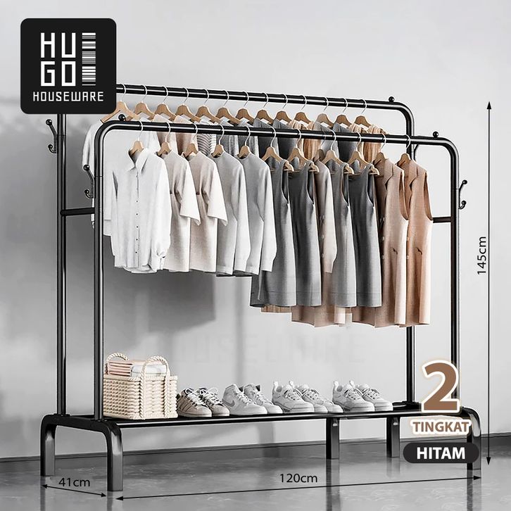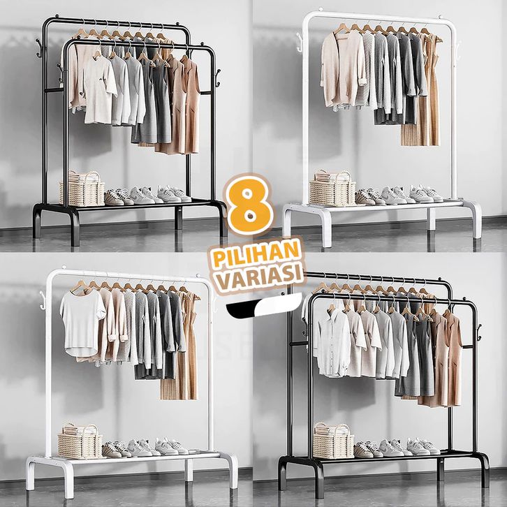 RAK GANTUNGAN BAJU GAMIS BESI GAWANG BERDIRI SERBAGUNA STAND HANGER LEMARI GANTUNG PAKAIAN TAS SEPATU JAS HIJAB JEMURAN