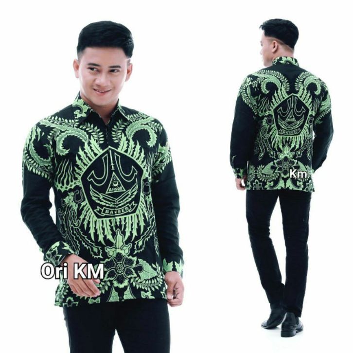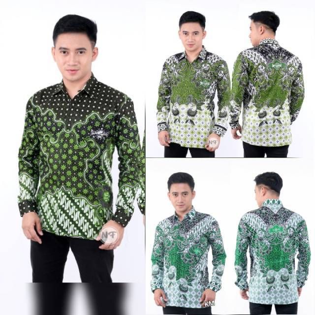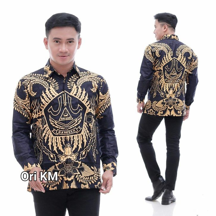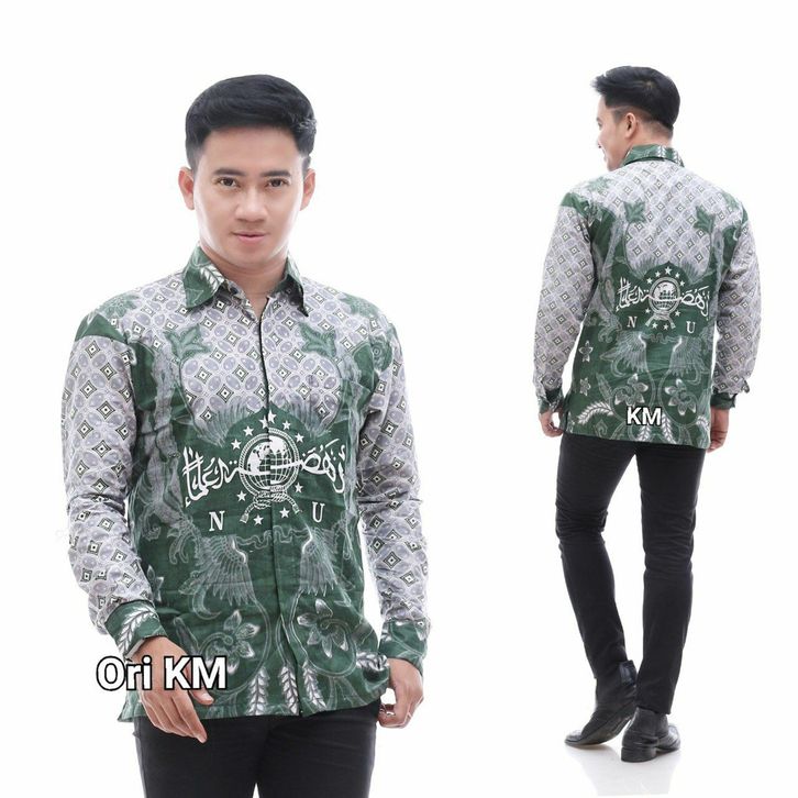 Kemeja Batik Cowok NU Wayang Ansor Banser Eksklusif Motif Bahan Halus Khas Pekalongan Baju Atasan Lengan Panjang