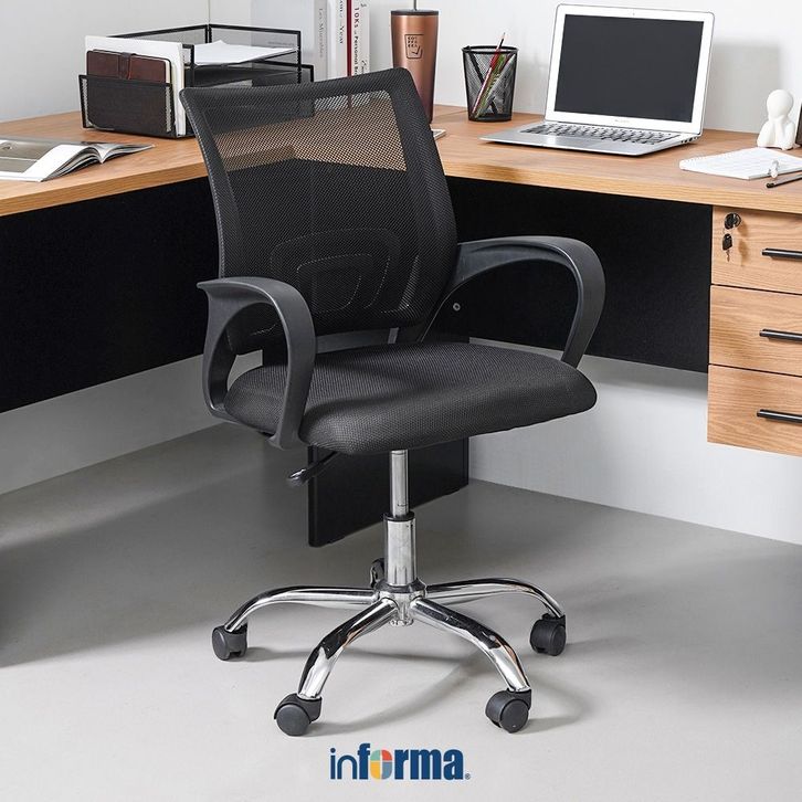 INFORMA G ZAKI KURSI KANTOR SANDARAN RENDAH HITAM TEMPAT KERJA DENGAN RODA OFFICE CHAIR MESH STAFF KARYAWAN FURNITURE