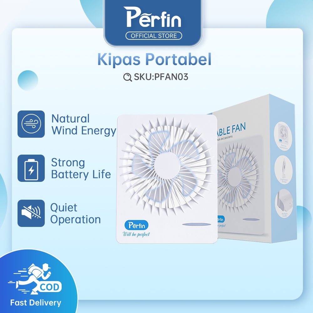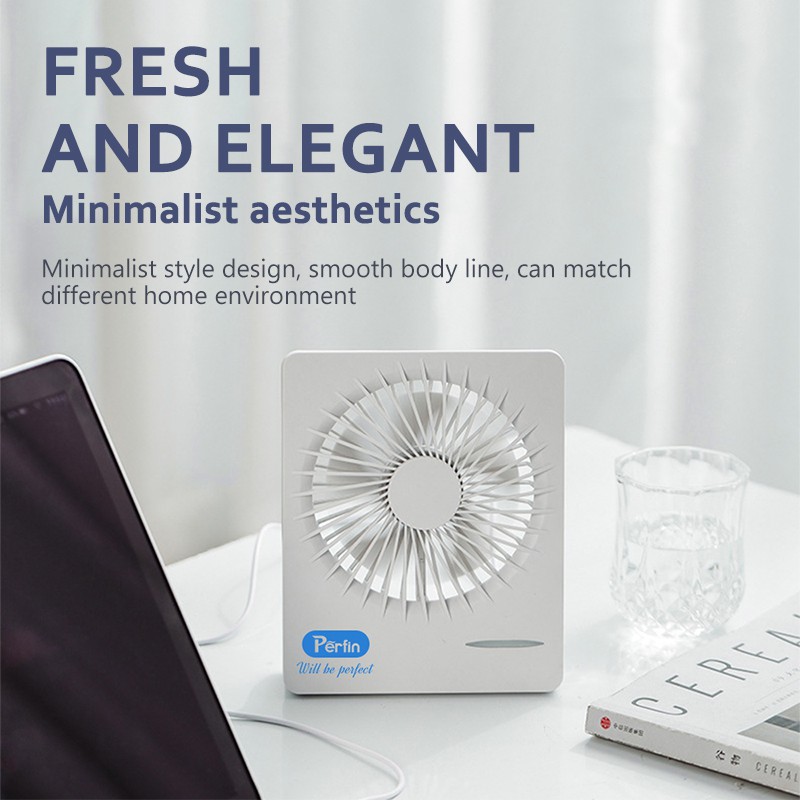 Perfin PFAN03 Kipas Angin Robot Portable Mini USB Tidak Berisik Desk Fan-- White 1200mAh