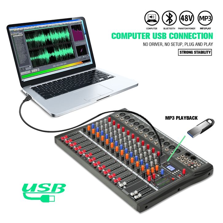 MIXER AUDIO 12 CHANNEL / NEW BAXS CT120S AUDIO MIXER PROFESSIONAL 12 CHANNELS BUILT-IN EQUALIZER EFFECT SUPPORT BLUETOOT