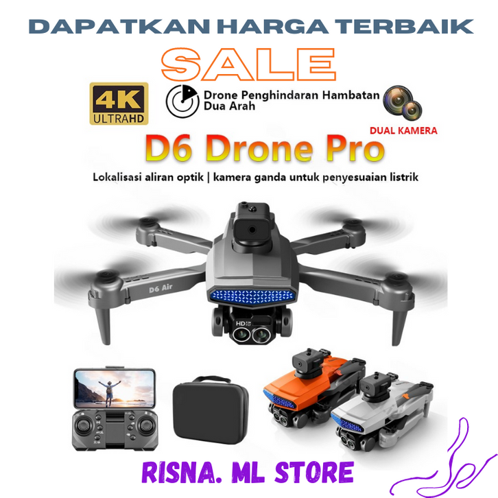 SMART DRONE D6 PRO 4K HD DUAL CAMERA SHOOT ORIGINAL INDOOR OUTDOOR DRONE MURAH MINI DENGAN KAMERA HD DRONE WIFI FPV DUAL