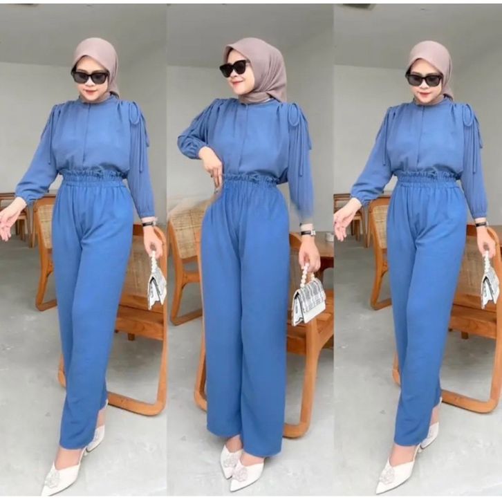 Baju Setelan Wanita kekinian One Set Viola Crincle Serut Pundak Terbaru Ld110