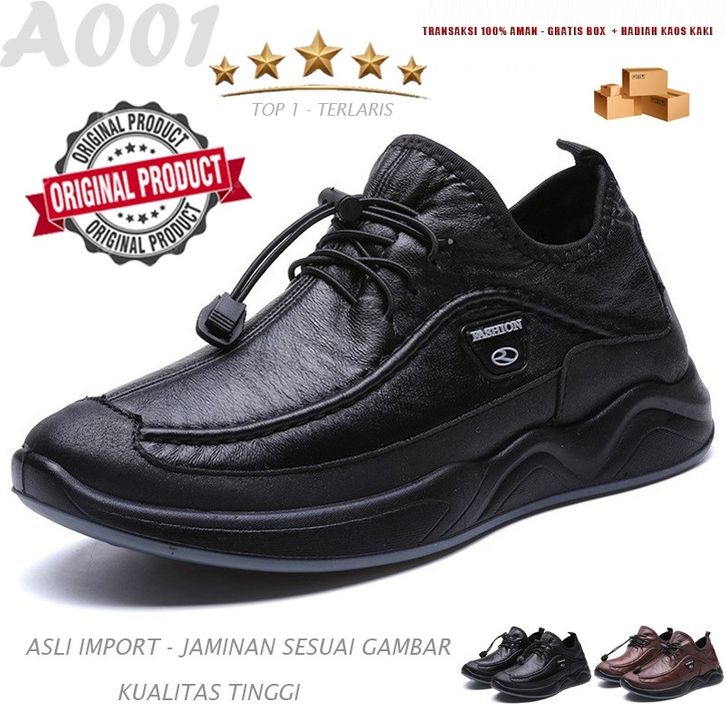 A001 Promo Terlaris, ORI Sepatu Kulit Sneakers Pria Wanita Original Asli Import Casual Formal