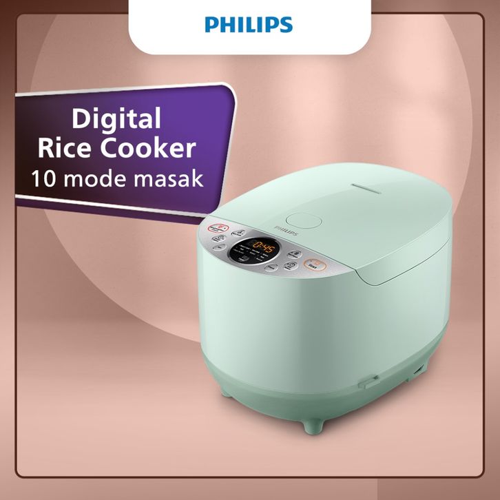 PHILIPS 1.8L Digital Rice Cooker HD4515/85 - 400Watt - 10 Menu, Green, hijau, mejikom multi fungsi