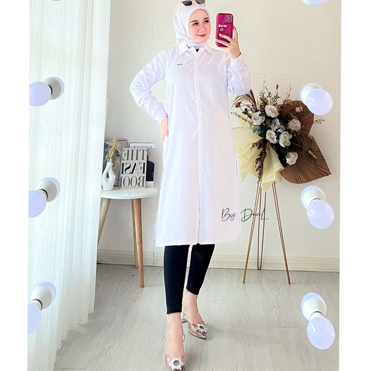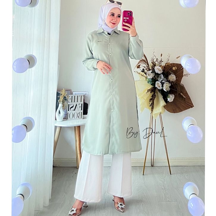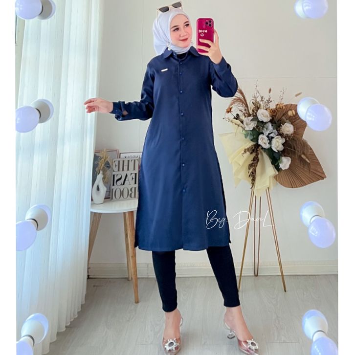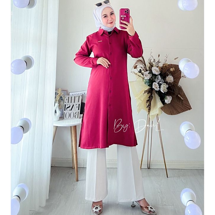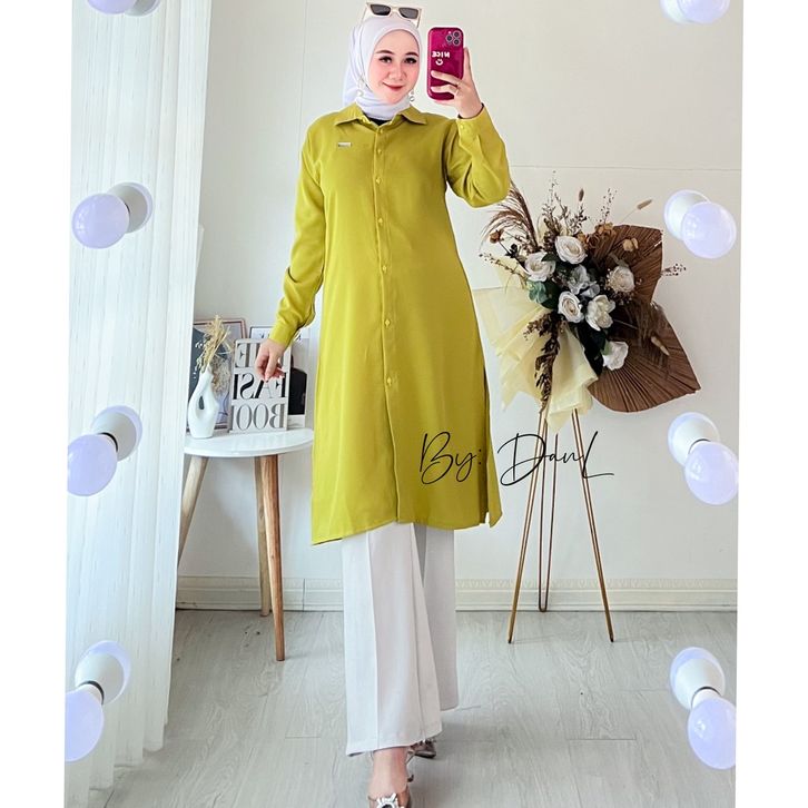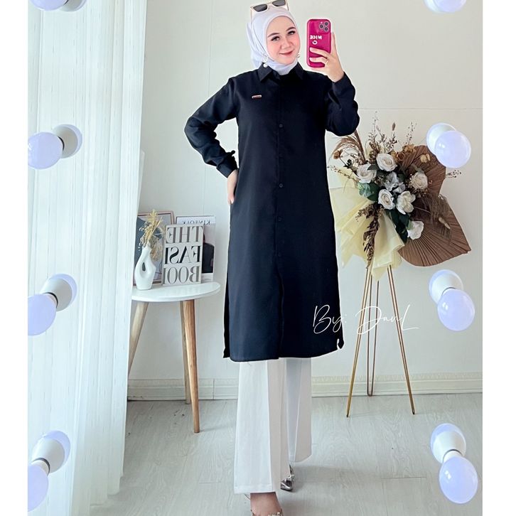 Tunik Cewek Basic Panjang LD 110cm Outer Polos Pakaian Bahan Bellacrep Atasan Baju Lebaran Busui Friendly
