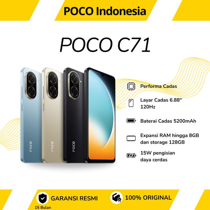 Hp Poco C71 4/128GB Performa Layar Cadas 6.88" 120Hz Expansi RAM hingga 8GB Baterai 5200mAh Garansi Resmi Official Store