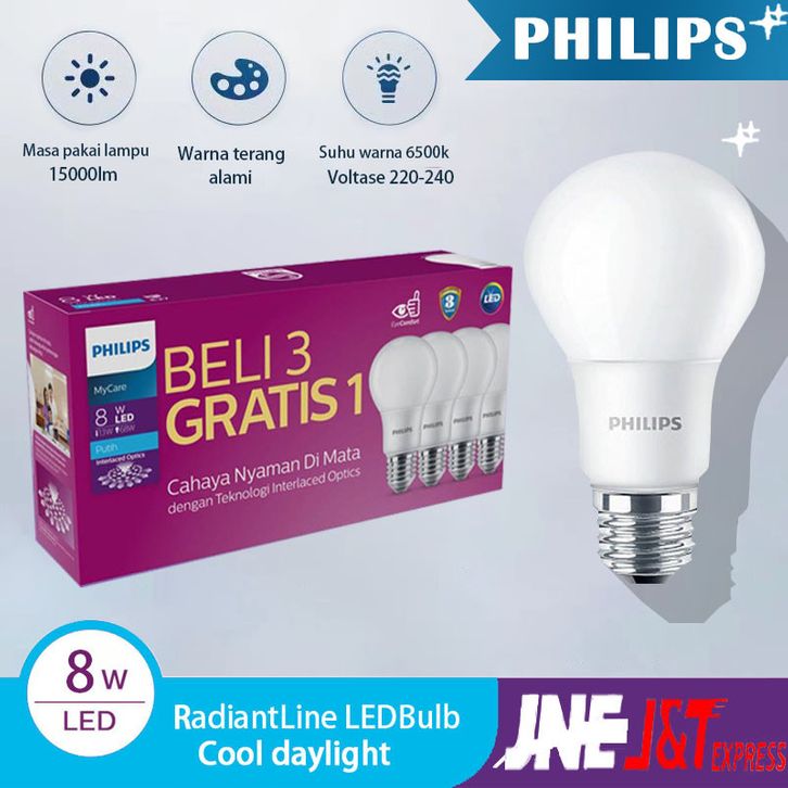 Lampu led philips 【3 gratis 1】Paket 14.5 Watt 8W 12W 6500K 【Cahaya nyaman】 low loss rumah Led Bulb