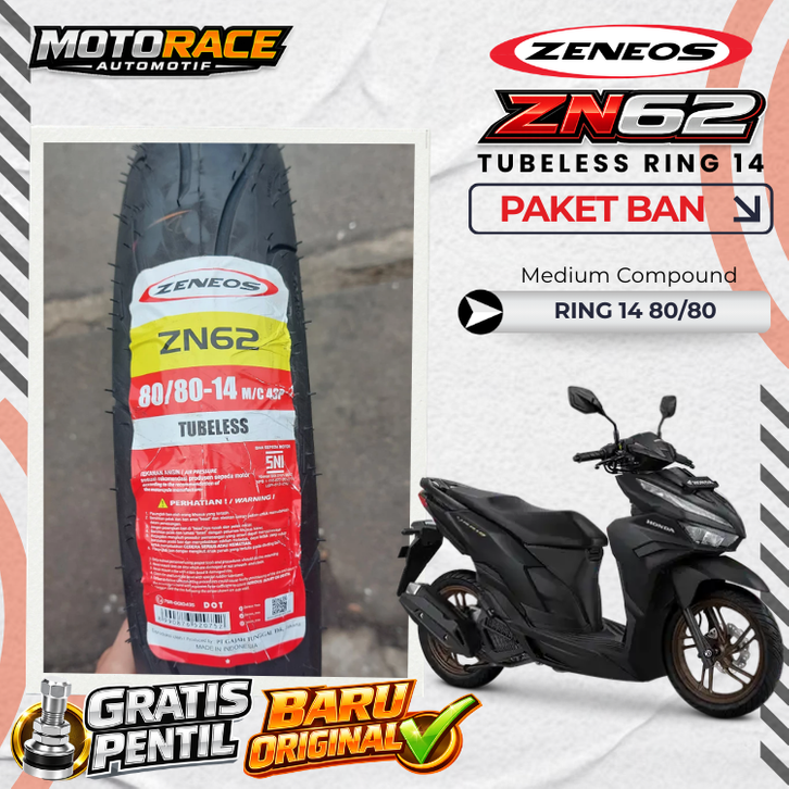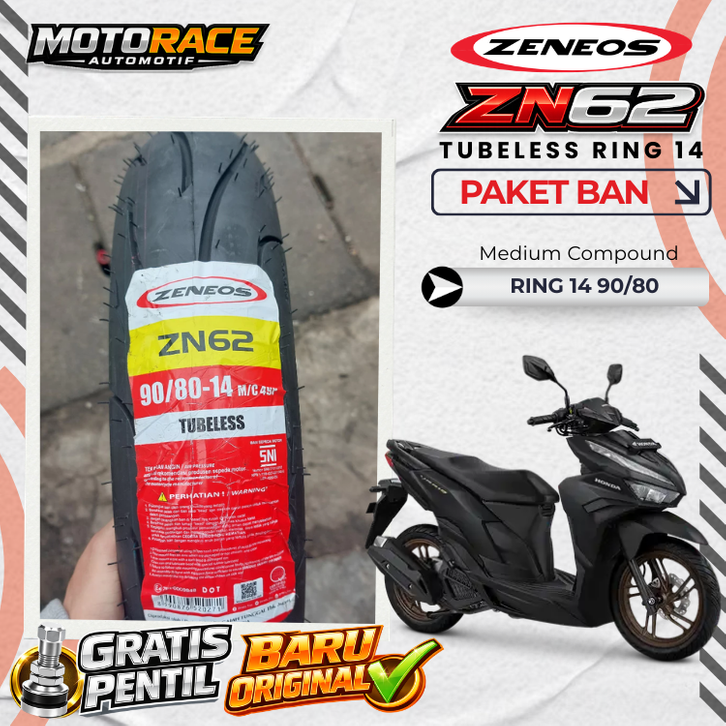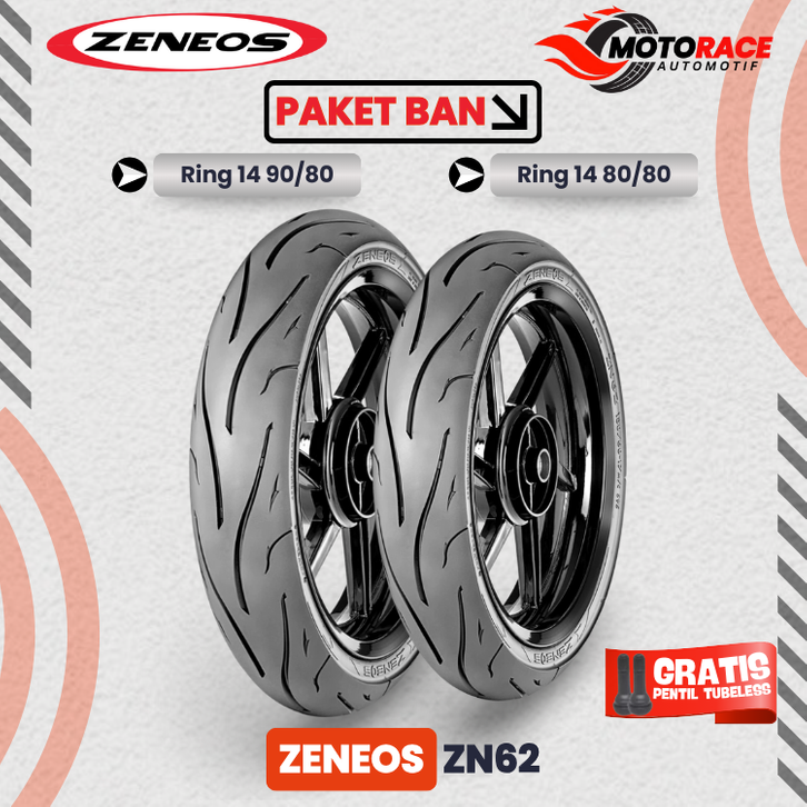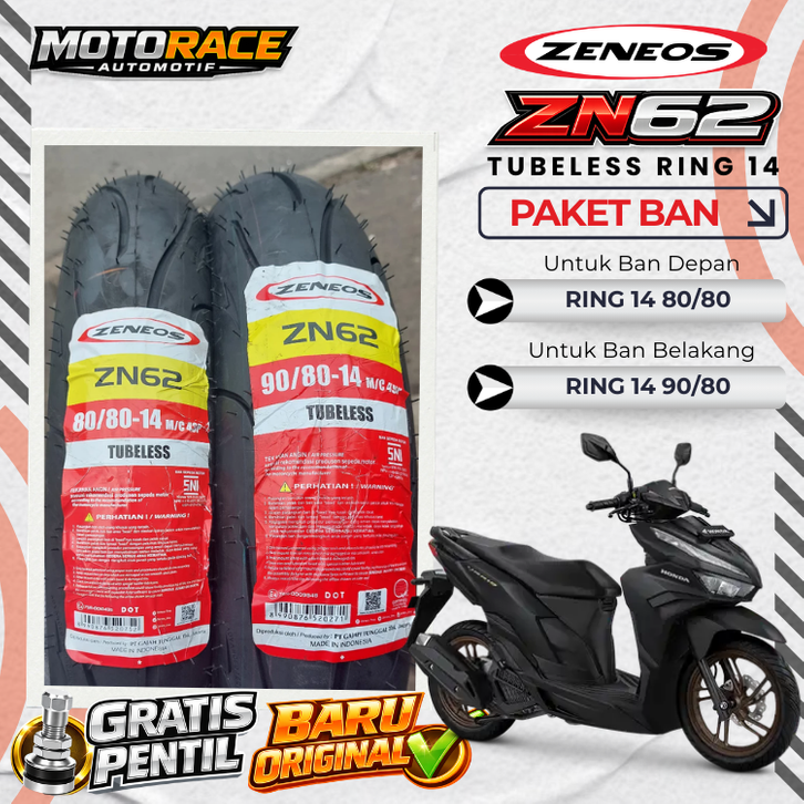 [Star] PAKET BAN MOTOR RING 14 MATIC SEPASANG // ZENEOS ZN62 80/80-14 DAN 90/80-14 TUBLESS // BAN MOTOR VARIO, BEAT