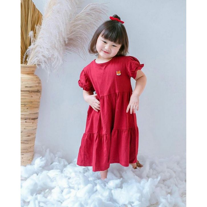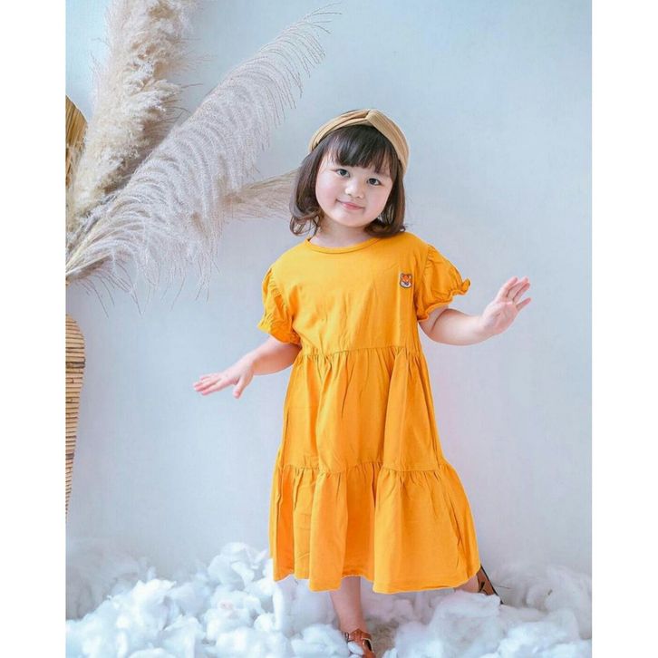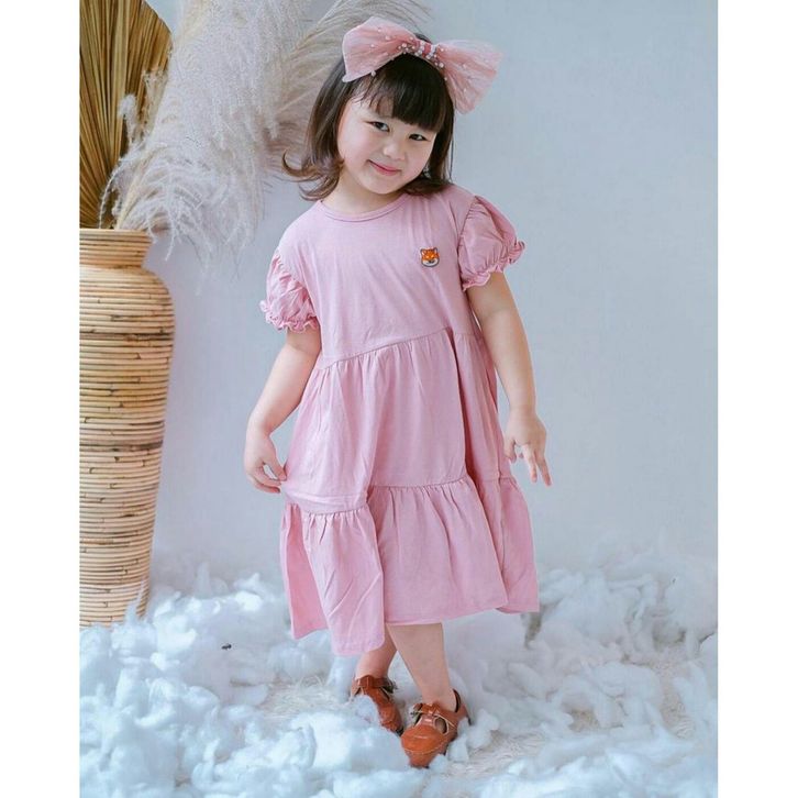 Dress Anak Wanita Perempuan Super Premium Dres Kids Molly Smilee Original Pakaian Lengan Pendek Polos Kekinian