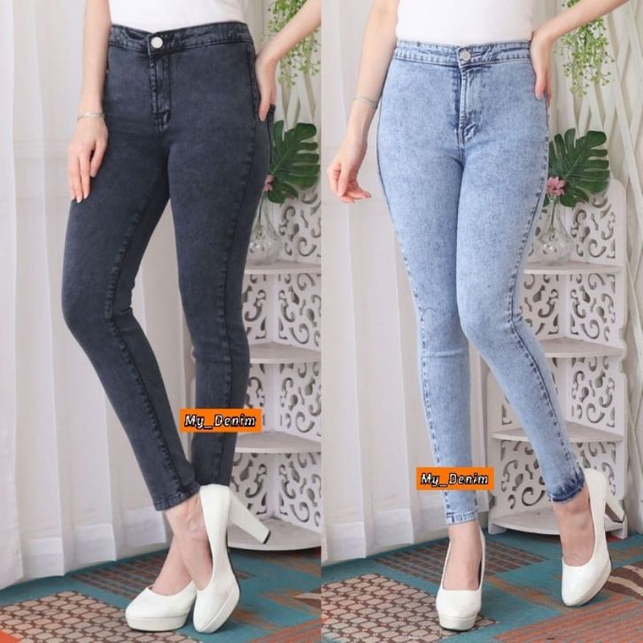 CELANA HIGHWAIST JEANS POLOS WANITA