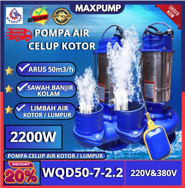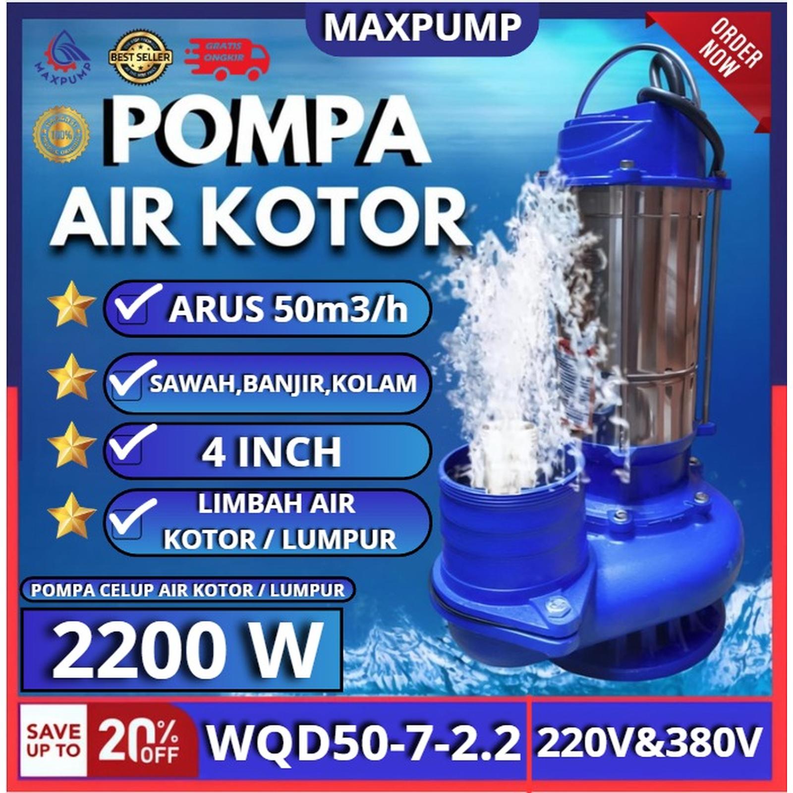 MAXPUMP WQD50-7-2.2 Pompa Celup Air Kotor 4inch Otomatis Kuras banjir Submerisble pump 2hp Manual 220V 380V