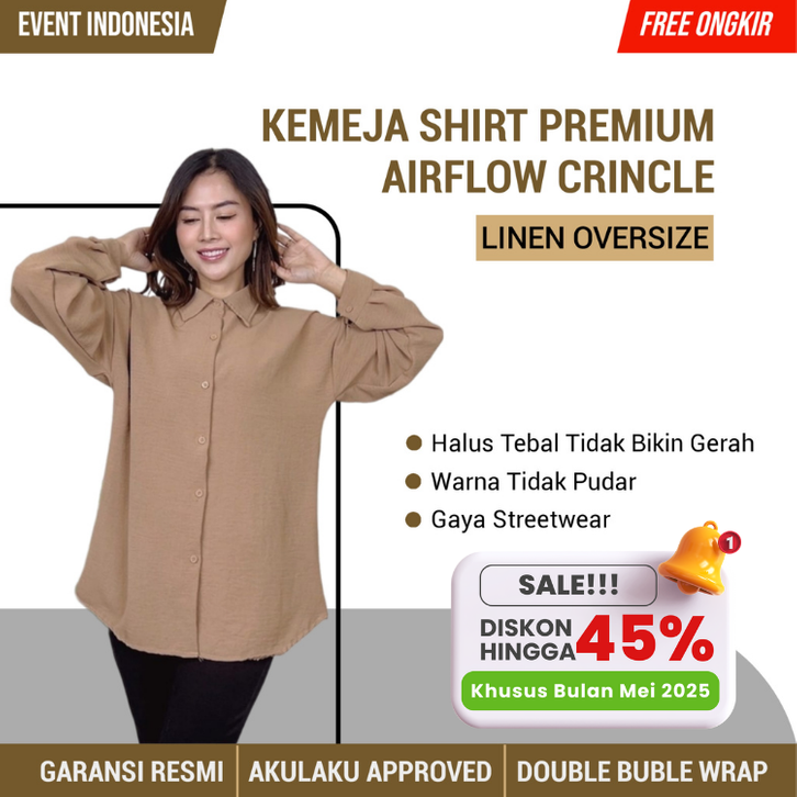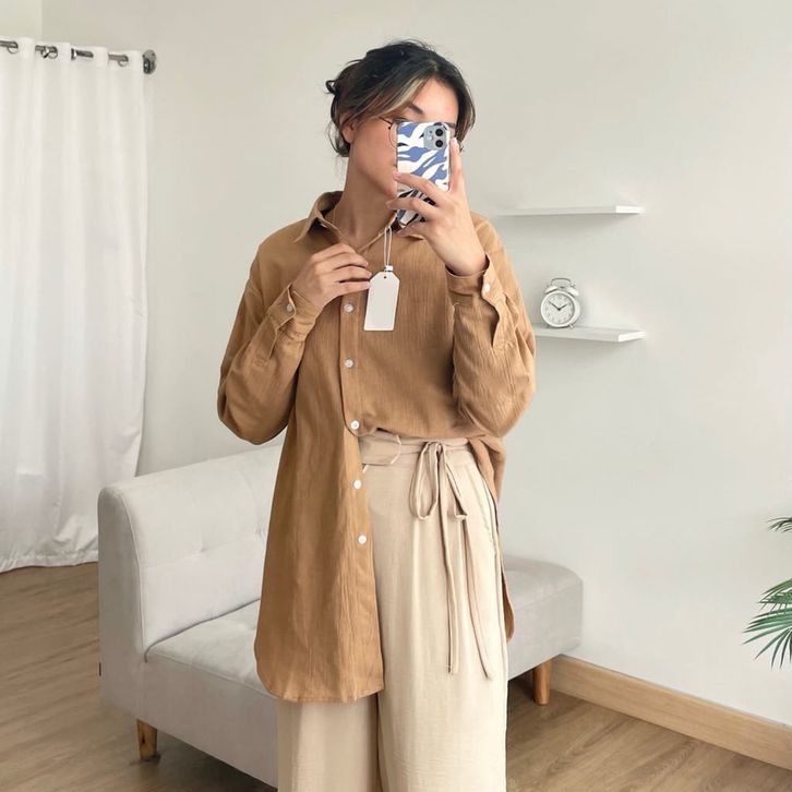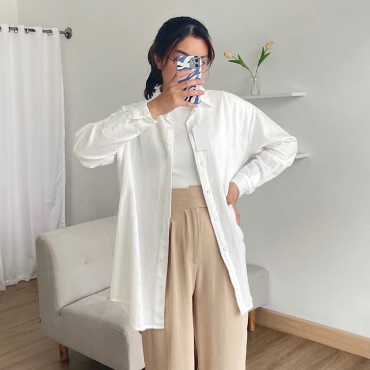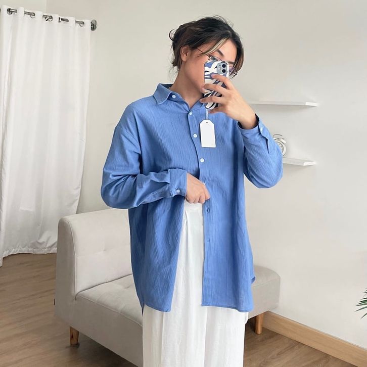 Kemeja Anna Shirt Premium Airflow Crincle Baju Atasan Linen Oversize Lengan Panjang Polos Wanita Dewasa
