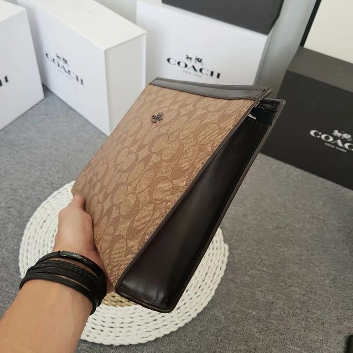 TAS WANITA CLUTCH COACH 420 Calf Leather Waterproof KHAKI (Free Sarung+BubbleWrap Free Ongkir