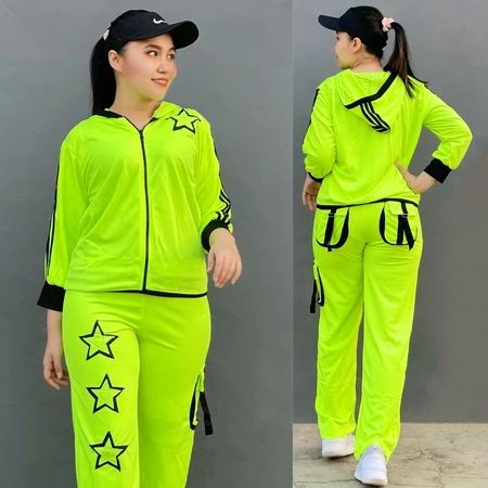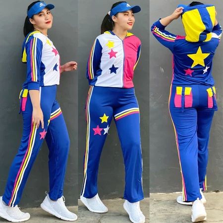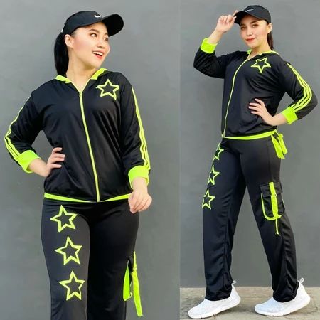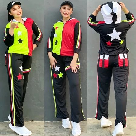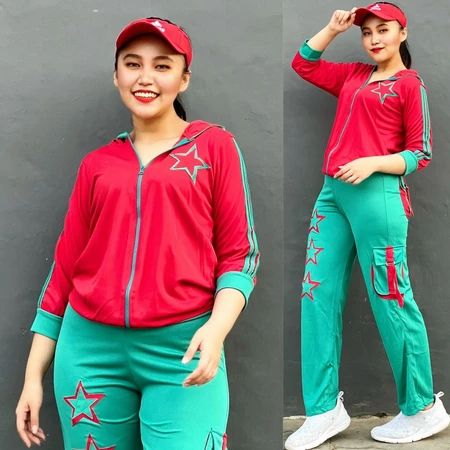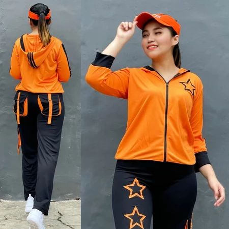 Baju Olahraga Wanita Satu Set Senam Aerobic Zumba Setelan Olahraga Gym Fitness Panjang Muslim Seragam Bintang Double