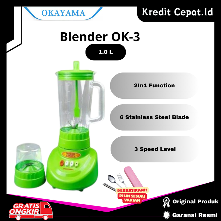 PROMO Blender OKAYAMA 2in1 OK-3 Stainless Steel Blade, 3 Speed Level - Kredit Cepat.id