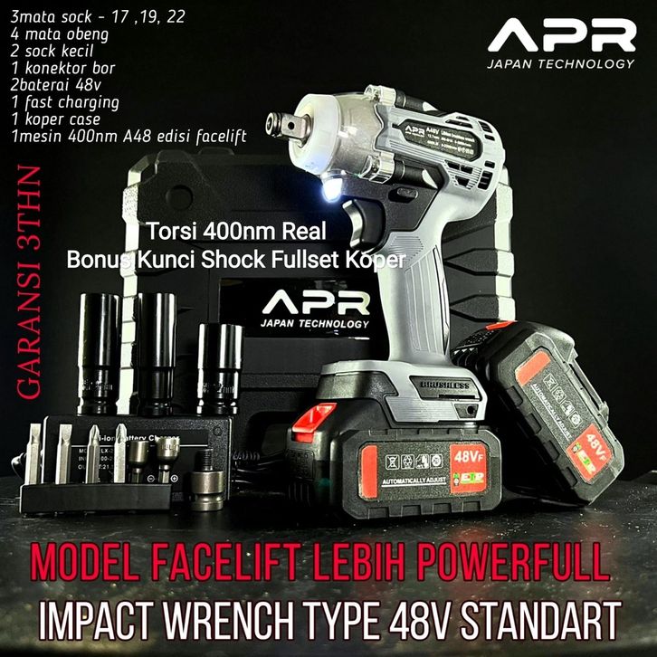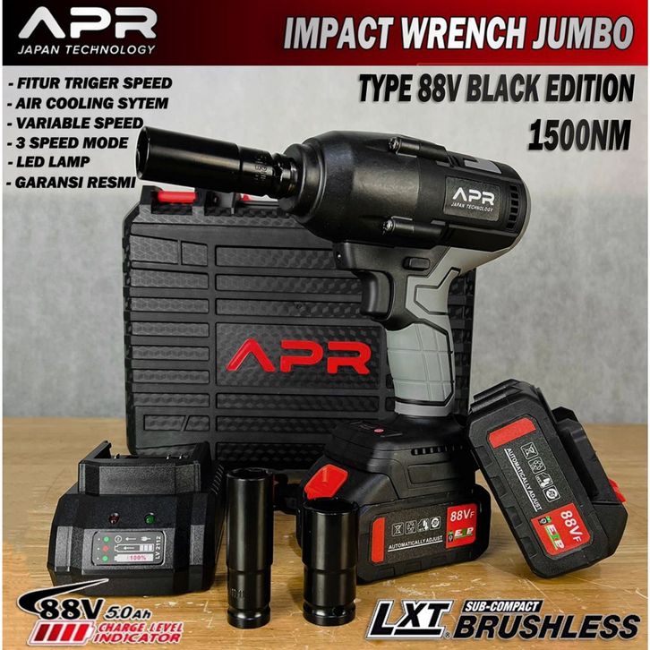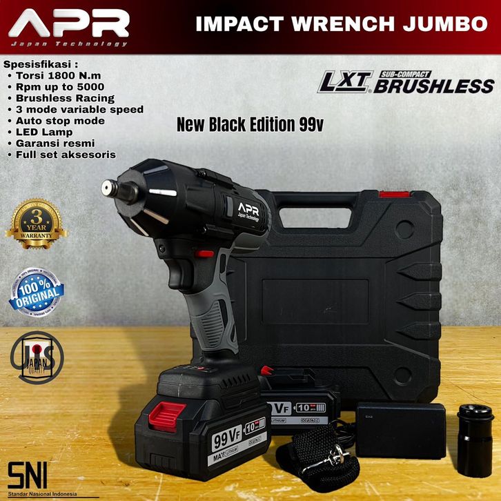 Impact wrench APR JAPAN JUMBO FACELIFT 99V 1800NM JLD 48V 2 baterai cordless mesin pembuka baut ban bor set impak buka m