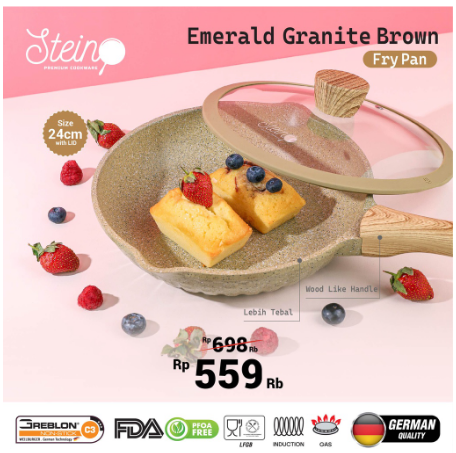 STEIN Emerald Frypan 24cm (Panci German Granite Coating | Non- Stick Pan )