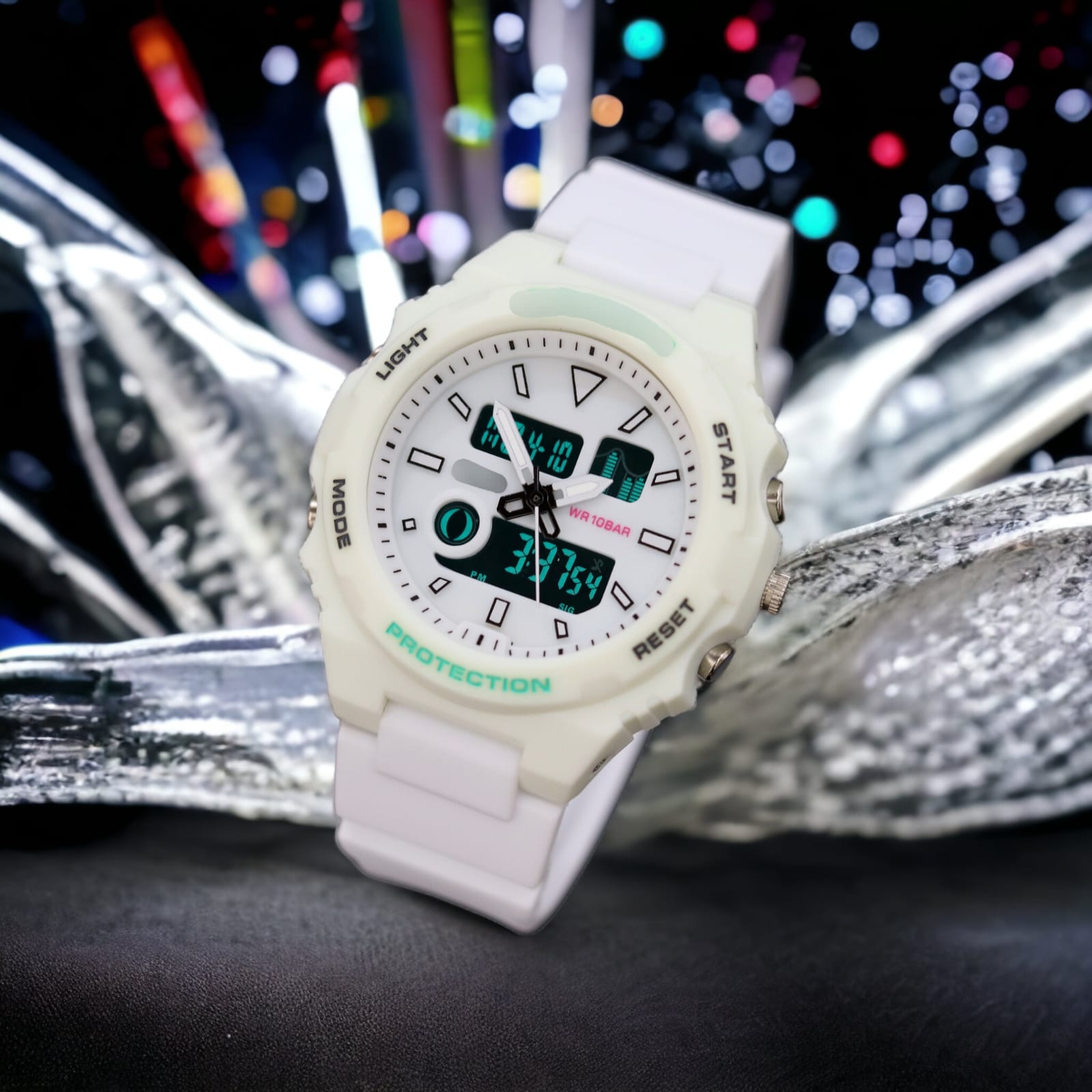 Jam Tangan Sport BAX-100 Dualtime Strap Karet Waterproof Tanggal Aktif