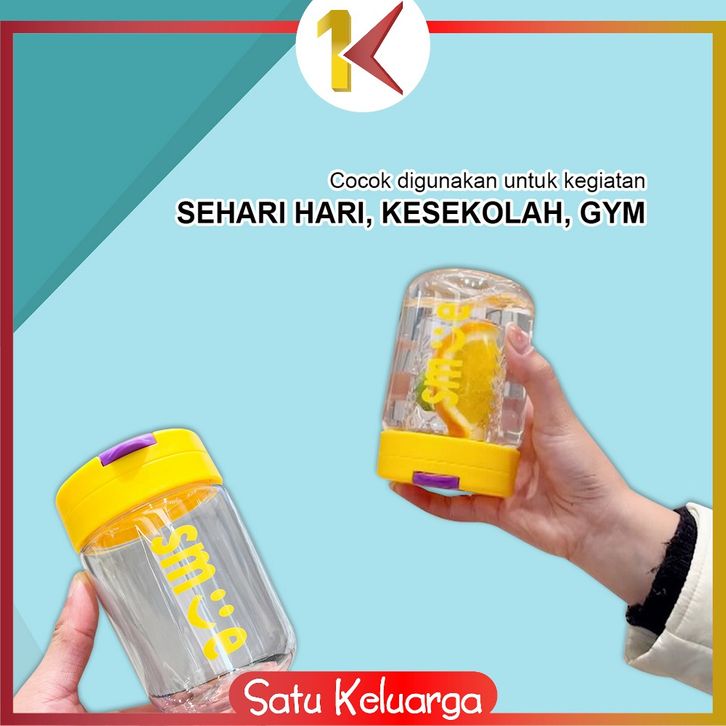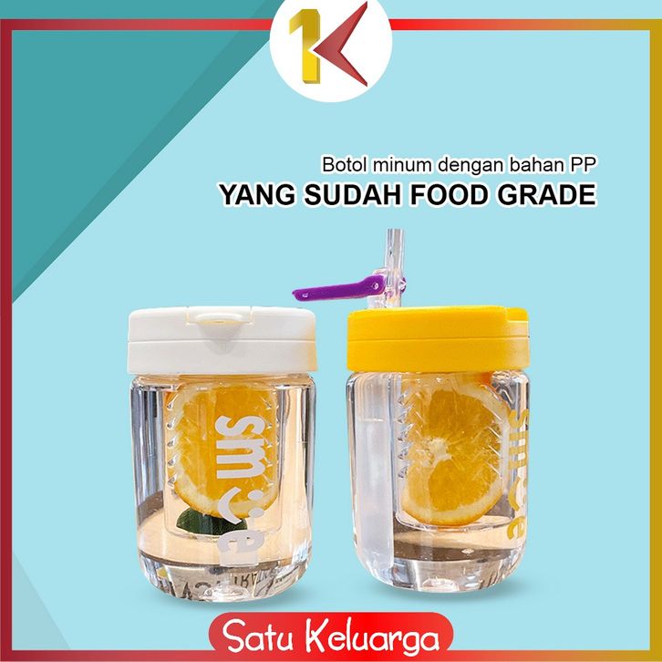 SK-C828 Botol Minum Infus Water Transparan Minimalis 400ML Anti Tumpah dengan Sedotan BPA FREE / Botol Air Minum Kecil