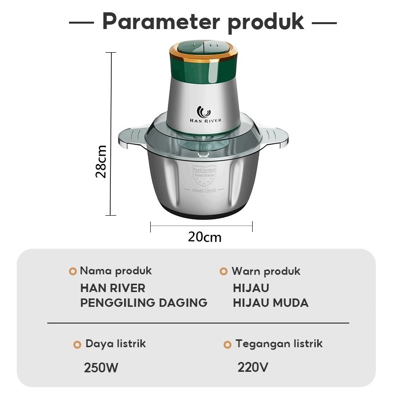 HAN RIVER BLENDER CHOPPER 2L BAJA TAHAN KARAT LISTRIK