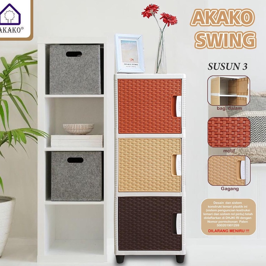 AKAKO - LEMARI PAKAIAN MINIMALIS SWING 3 SUSUN LEMARI PLASTIK LEMARI BAJU LEMARI ROTAN 12.12