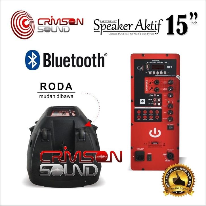 PAKET KOMPLIT SPEAKER AKTIF CRIMSON 15 inch BLUETOOTH Type SOUL 15