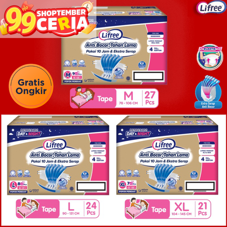(FREE ONGKIR) LIFREE PEREKAT POPOK DEWASA SIZE M/L/XL (ECONOMIC BOX) / PAMPERS DEWASA / PAMPERS LANSIA / POPOK DEWASA