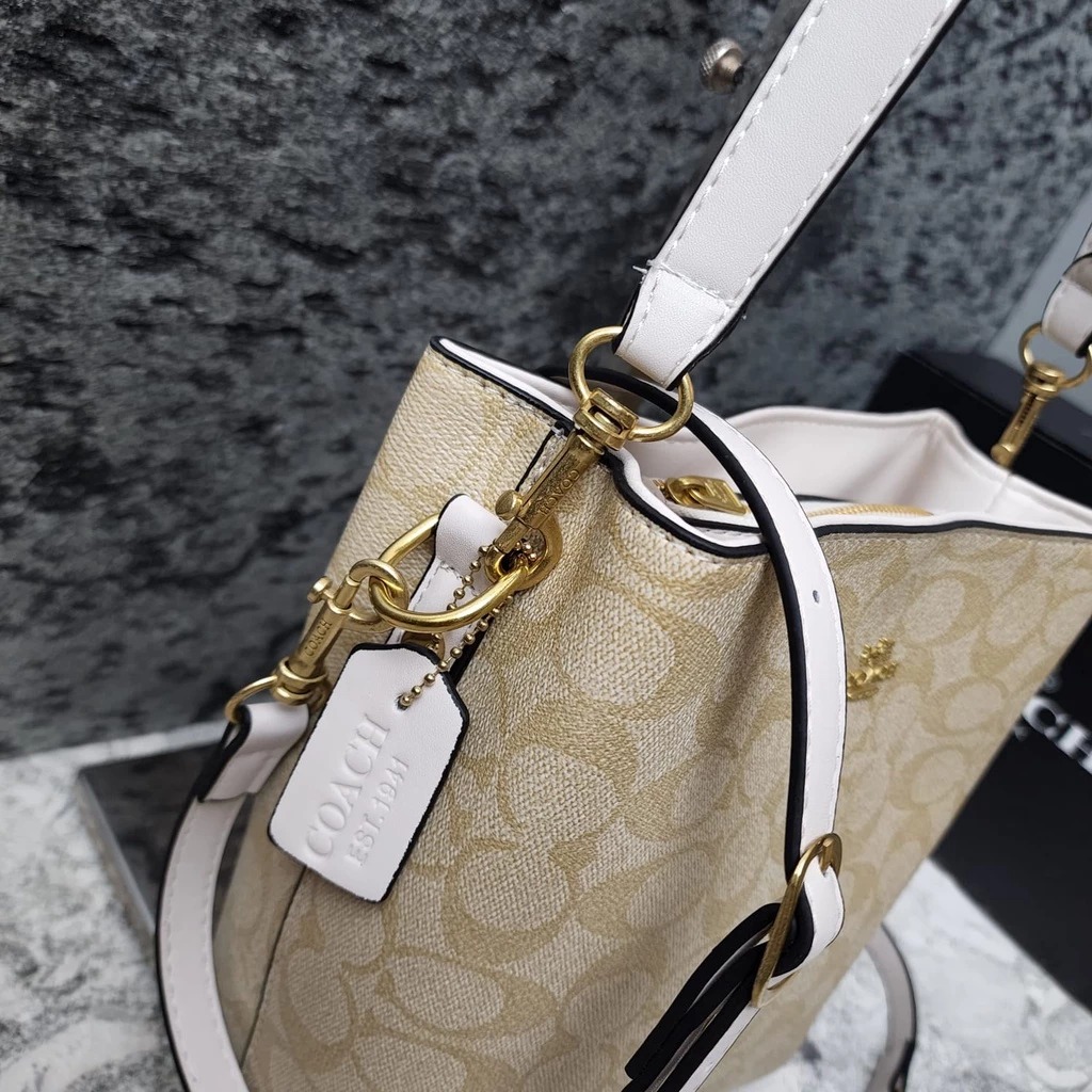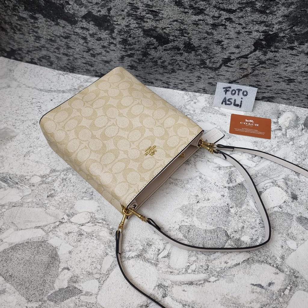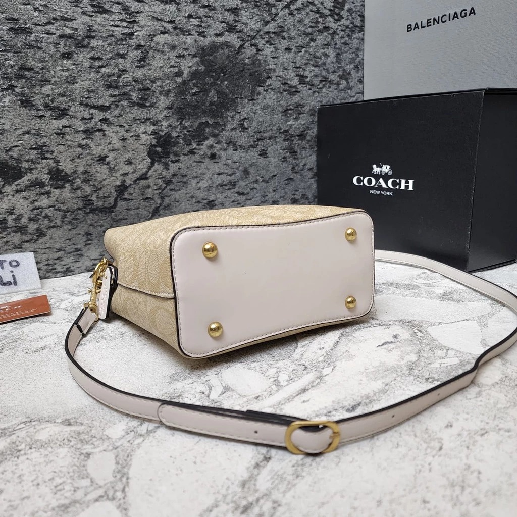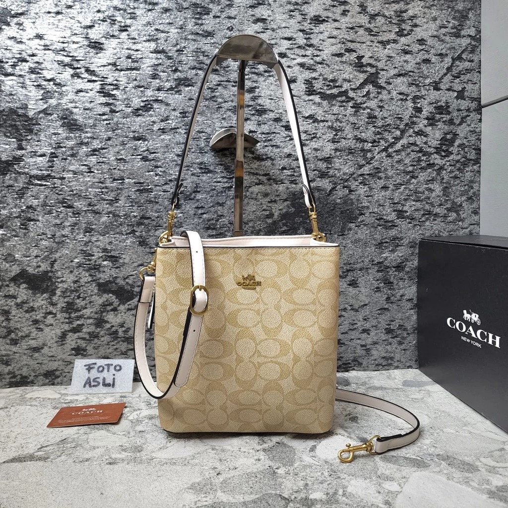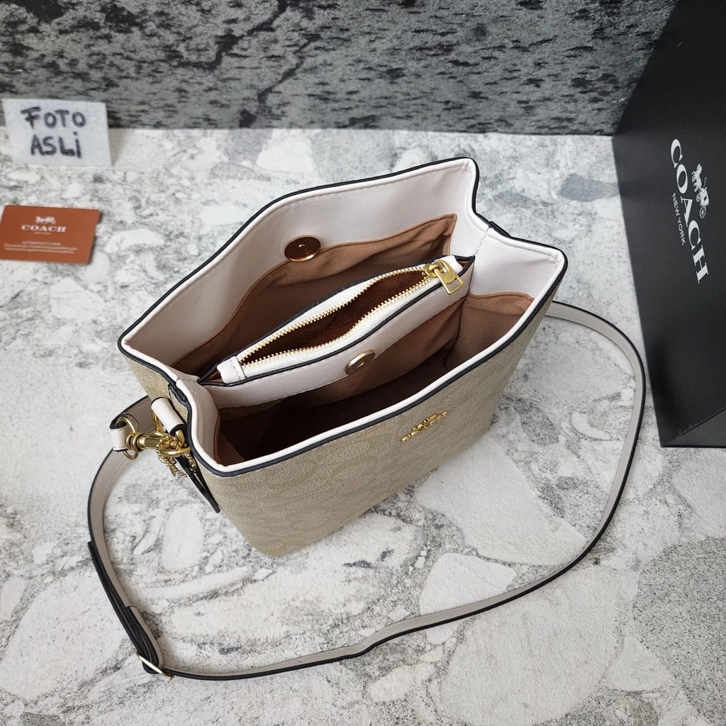 TAS WANITA COACH Bucket Calf Leather 3 Ruang Beige Free Sarung + Bubble Wrap Free Ongkir